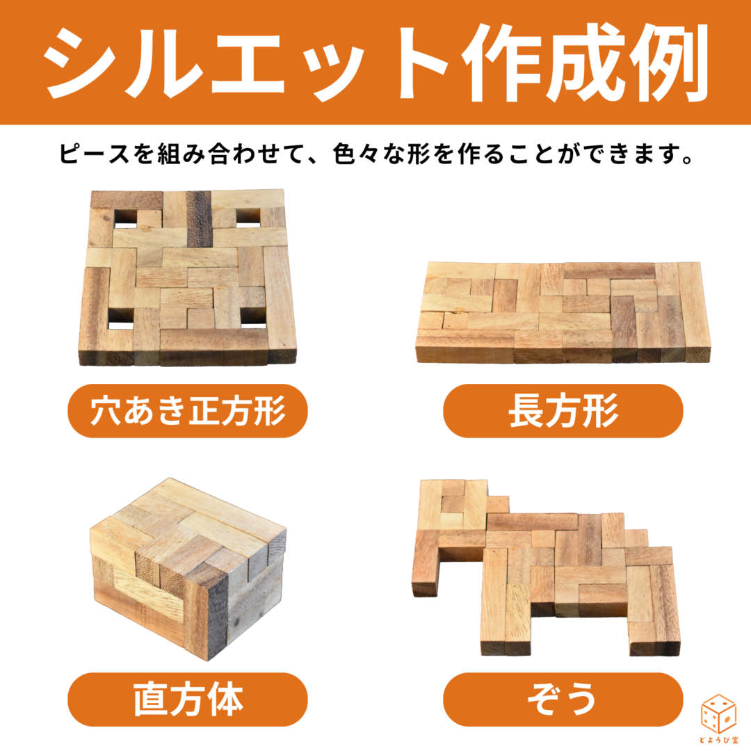 どようび堂では、他にも平面のシルエットパズルはもちろん、木製のパズル・ゲームを多数取り扱っています。