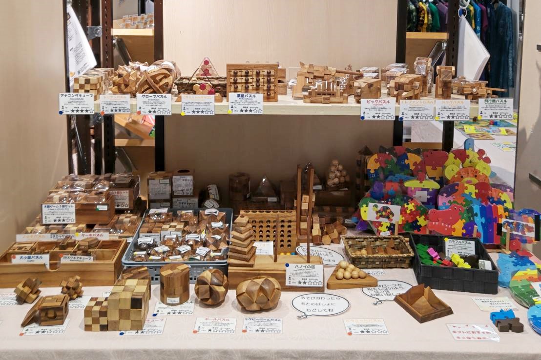 木製パズル・ゲームコーナーは写真の通りでたくさんの商品を扱っています!