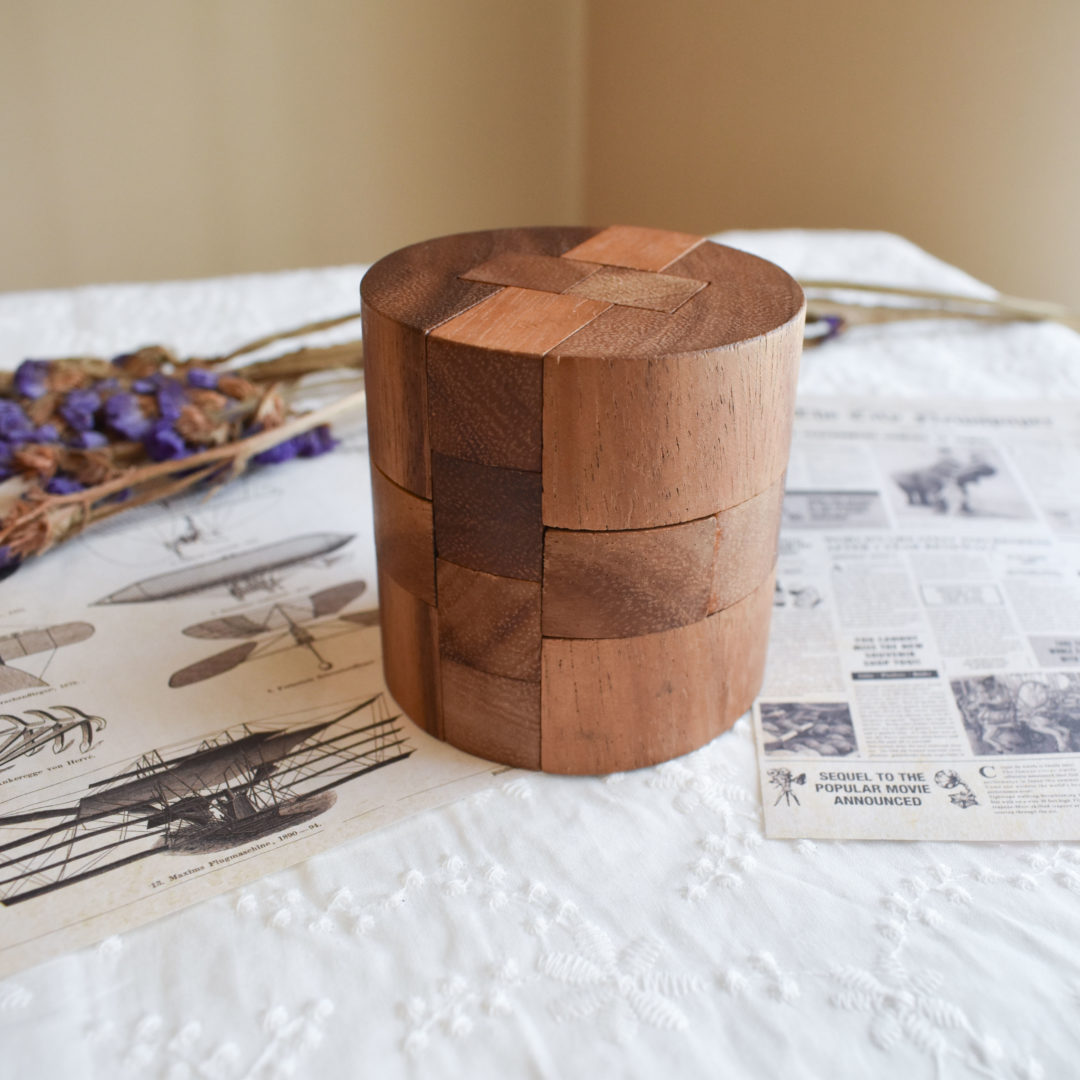 木製ゲーム紹介コラムの第11弾は、1人用の立体パズル「シリンダーパズル」です。