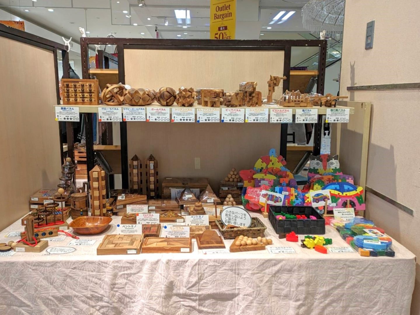 木製パズル・ゲームコーナーは写真の通りでたくさんの商品を扱っています!