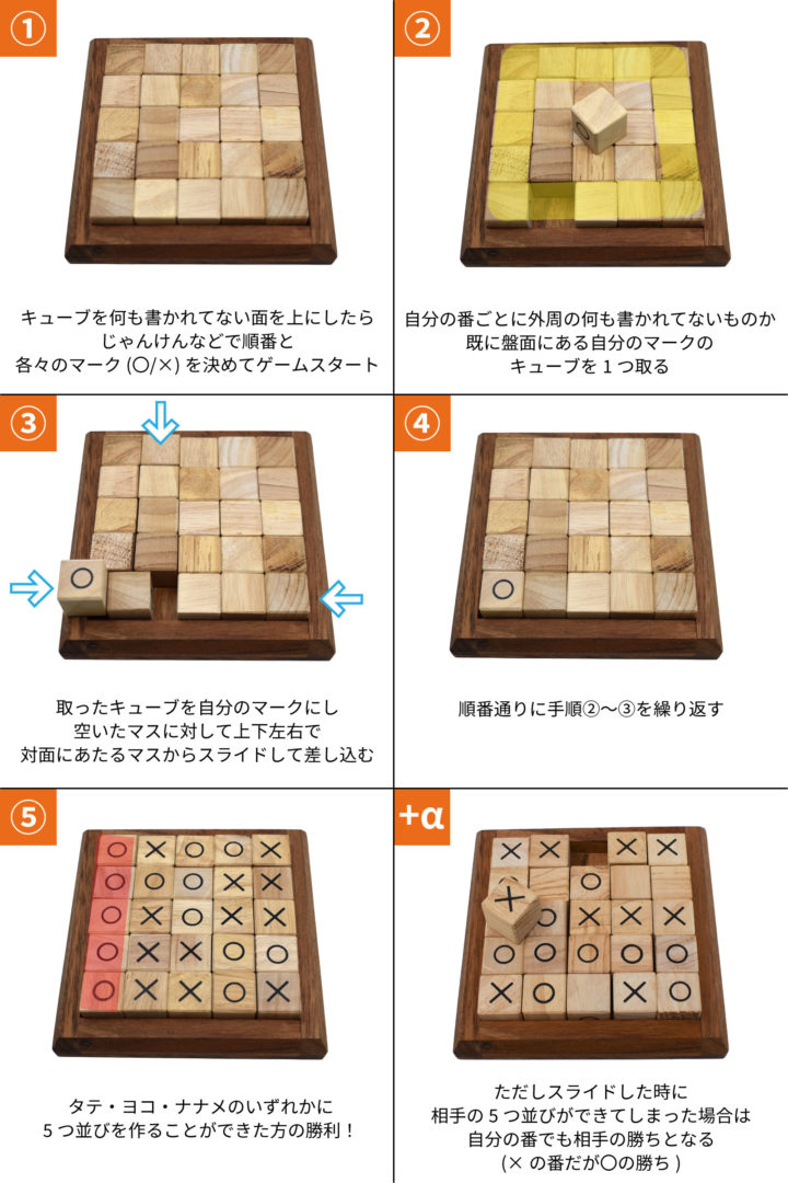 自分のマークのキューブと外周にない中央の9つのキューブは相手は取ることができません。このことを頭に入れておけば「この番はこっちを優先することで有利になるかも」「あっちは急がなくてもまだ負けないかも」と攻めるタイミングと守るタイミングがわかってくるかもしれません。