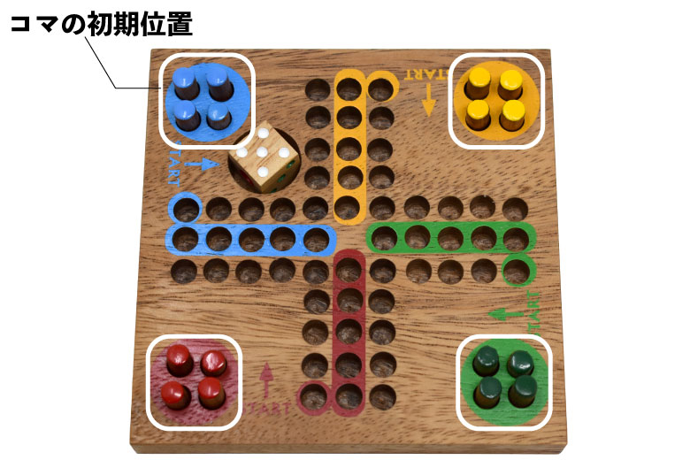 ルドーのコマは1人4つあり、すべてをゴールさせた人が1位となります。