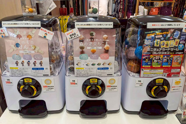 ミニサイズのボードゲームや木のけん玉・逆立ちコマなどが手に入るガチャガチャは毎回大人気です💞