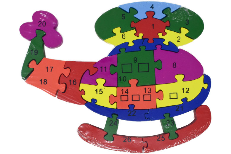 プロペラもかわいいヘリコプター型。乗り物好きなお子さまにぴったりのパズルです。