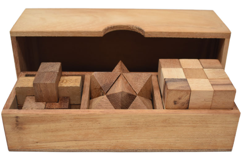 スネークキューブ・ソーマキューブにスターパズルが一緒になった3点セット。ひとつひとつはそう難しくはないので立体パズルが初めての方にもおすすめ。