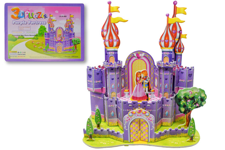 お城でお姫様と王子様が仲良く見つめ合うロマンチックなセット。組み立てるだけで物語の世界が広がります。
